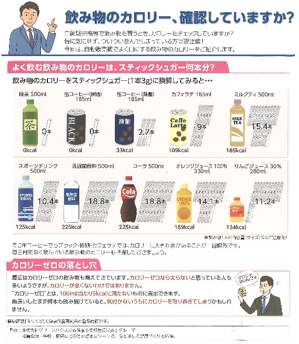 自動販売機などで飲み物を買うとき、カロリーをチェックしていますか?
