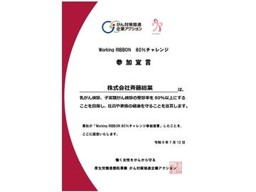 斉藤総業は、「Working RIBBON 80%チャレンジ」への