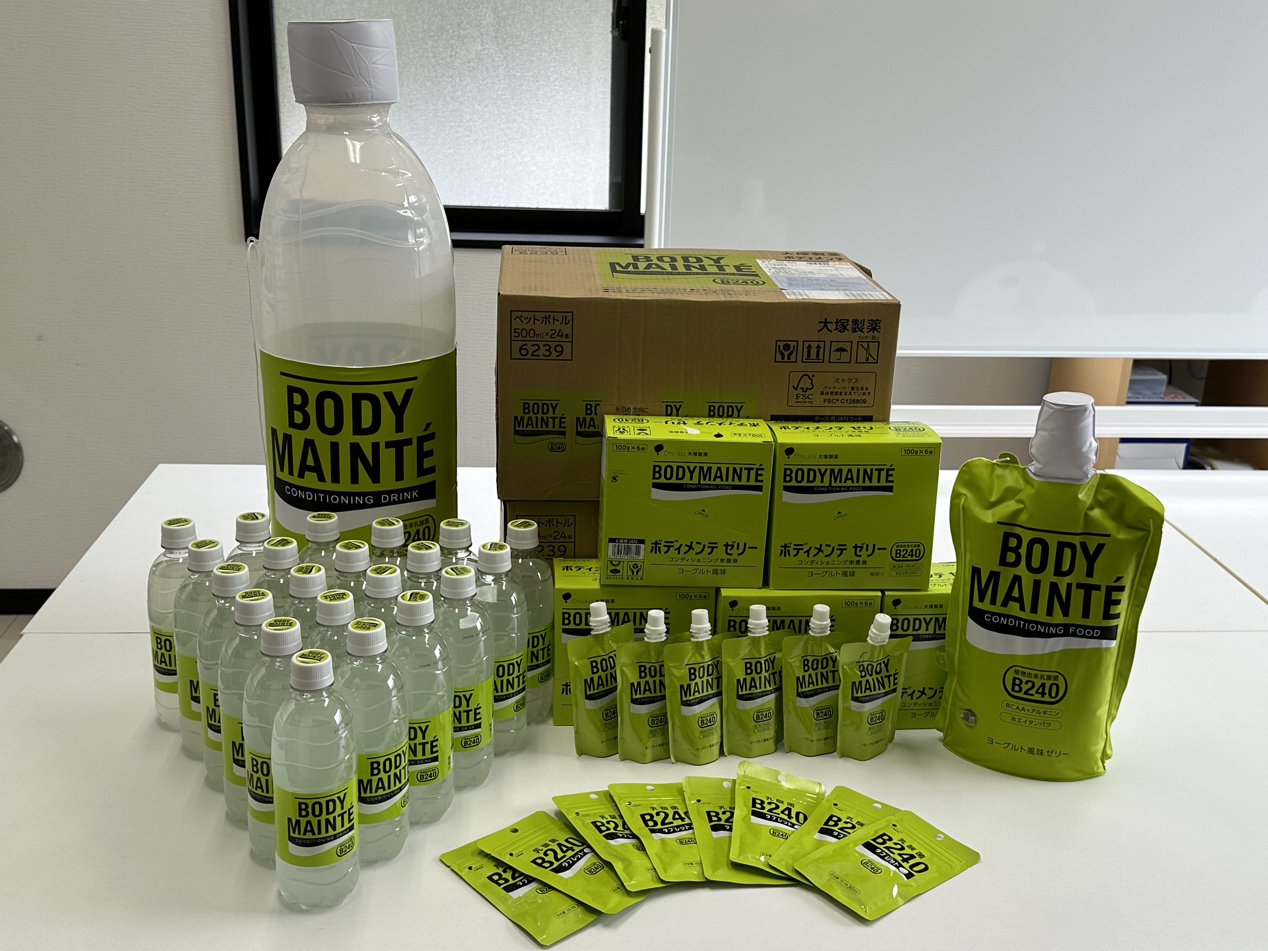 2024.03.08 乳酸菌B240で体調管理! 体調管理のアイテムとして、『乳酸菌B240』シリーズを配布しました。 ボディメンテドリンク ボディメンテゼリー B240タブレット 免疫力を高め、細菌やウイルスに負けない体づくりを サポートするアイテムとして、大塚製薬さんの製品を 社員全員に配布しました。