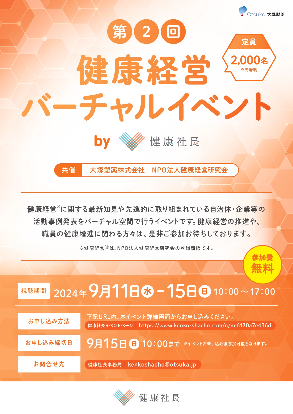 「第2回 健康経営バーチャルイベント by 健康社長」開催のご案内|大塚製薬 健康社長 (kenko-shacho.com)