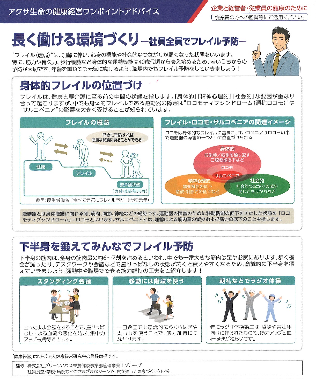 年齢を重ねても元気に働けるよう、職場内でもフレイル予防をしていきましょう!